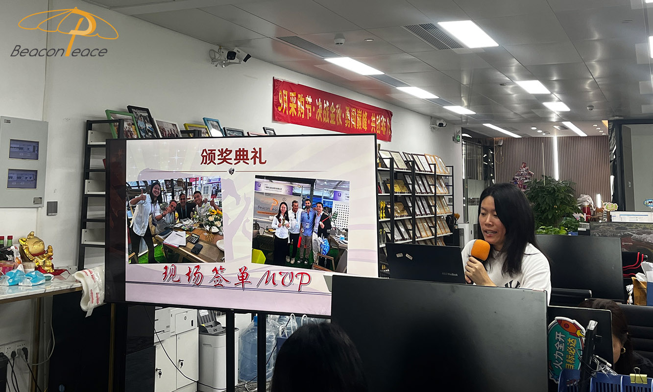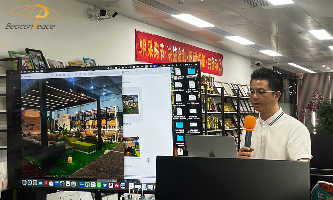 On November 7, 2025, Guangzhou Beacon Peace Outdoor Furniture held a grand October performance commendation meeting and November business launch meeting at its headquarters. This meeting not only recognized outstanding teams and individuals in the past month but also laid a solid foundation for the company's upcoming business challenges and goal planning, fully stimulating employee enthusiasm and teamwork.