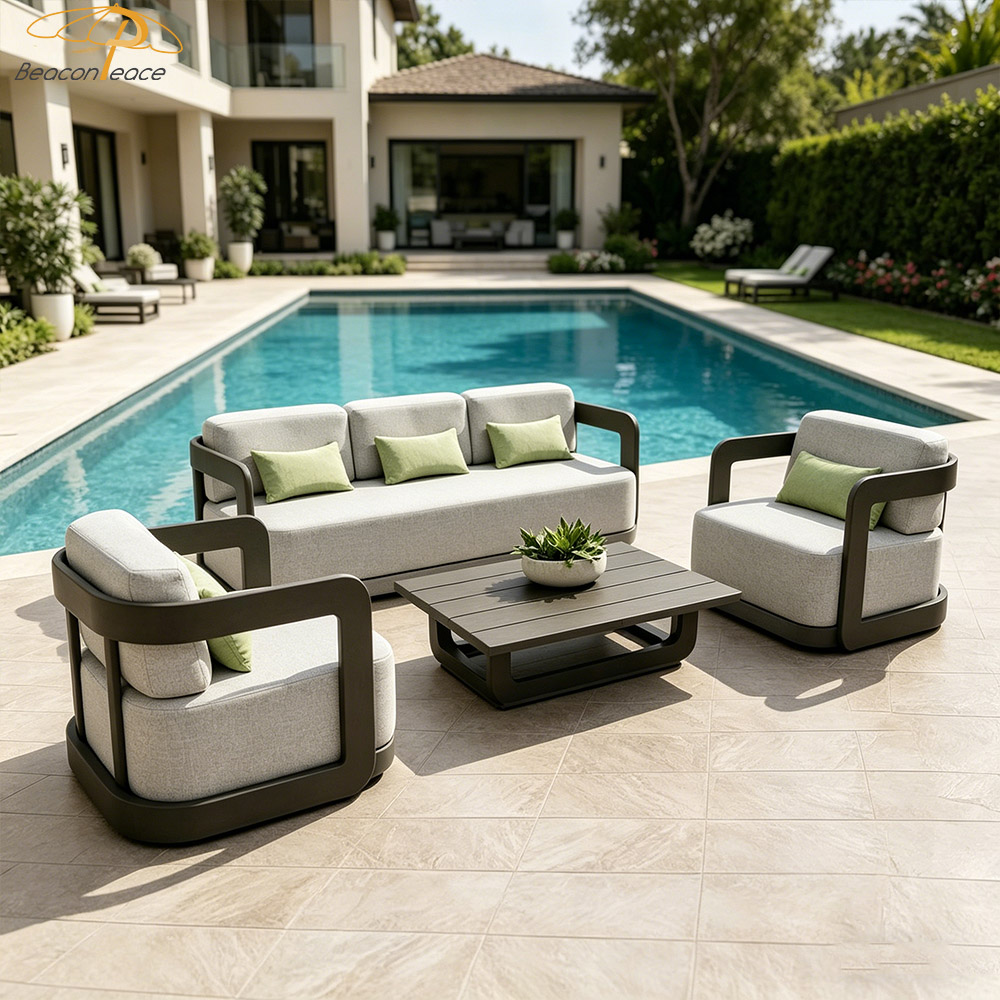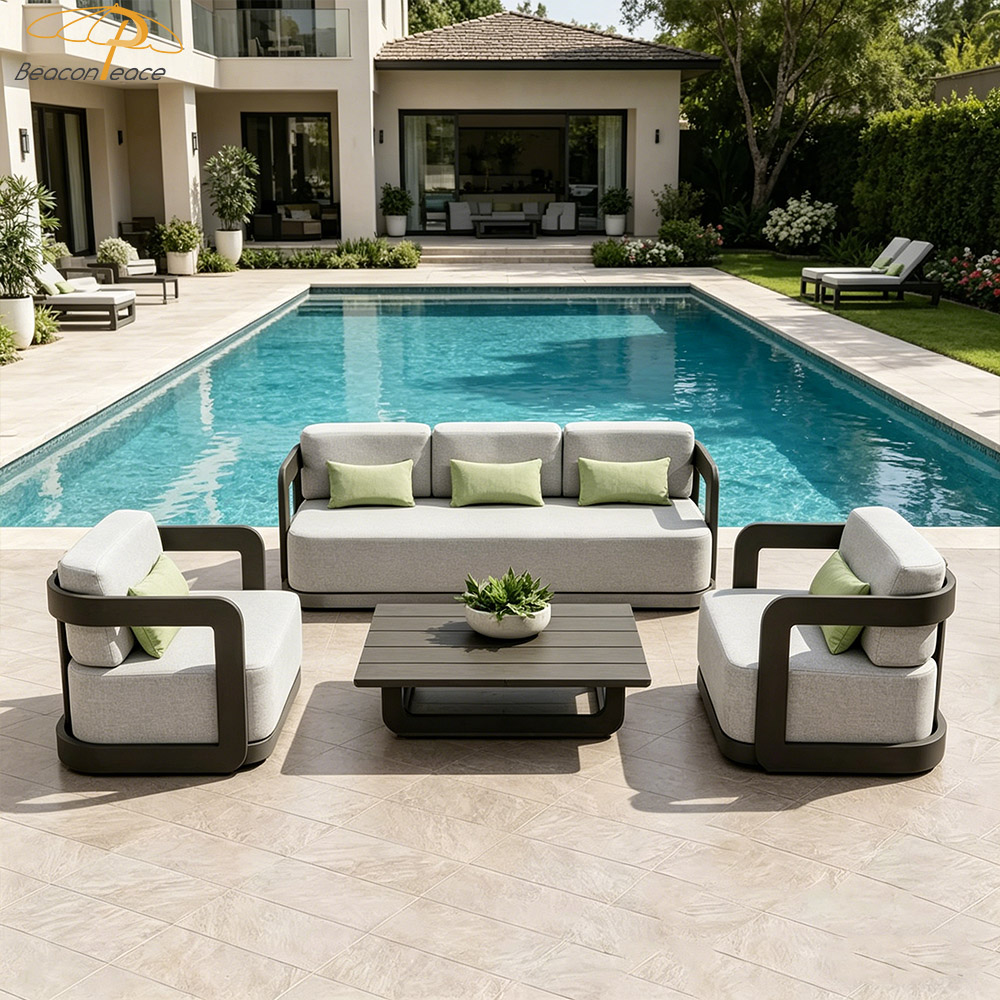 All Weather Outdoor Wooden Furniture Hotel Village Poolside Terrace Teak Wood Sectional Garden Sofa SetMOQ :