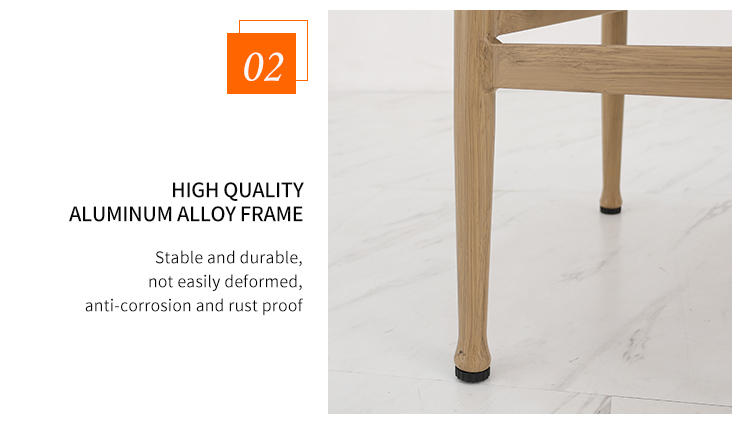 BP5891 Modern Outdoor Aluminium Furniture Aluminum Brush Wood Grain Rope Woven Garden Dining ChairMOQ :