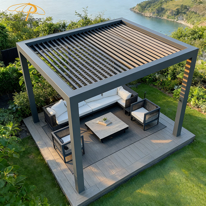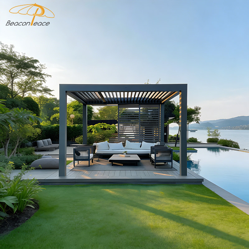 BP8709 Modern Outdoor Furniture Resort Villa Courtayrd Terrace Aluminum Louvered Pergola Gazebo PavilionMOQ :
