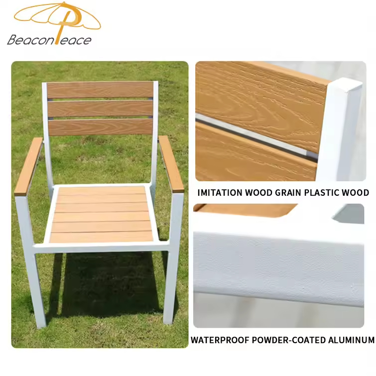 BP3762 Modern Outdoor Garden Furniture Aluminium Frame Plastic Wood Outdoor Restaurant Patio Dining Chair |