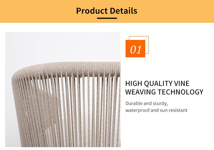 Sofa: Aluminum Frame+Rope+Fabric Cushion+Heat Transfer Painting Aluminum Arms and Legs Coffee Table: Aluminum Top+Heat Transfer Painting Aluminum Arms and Legs |