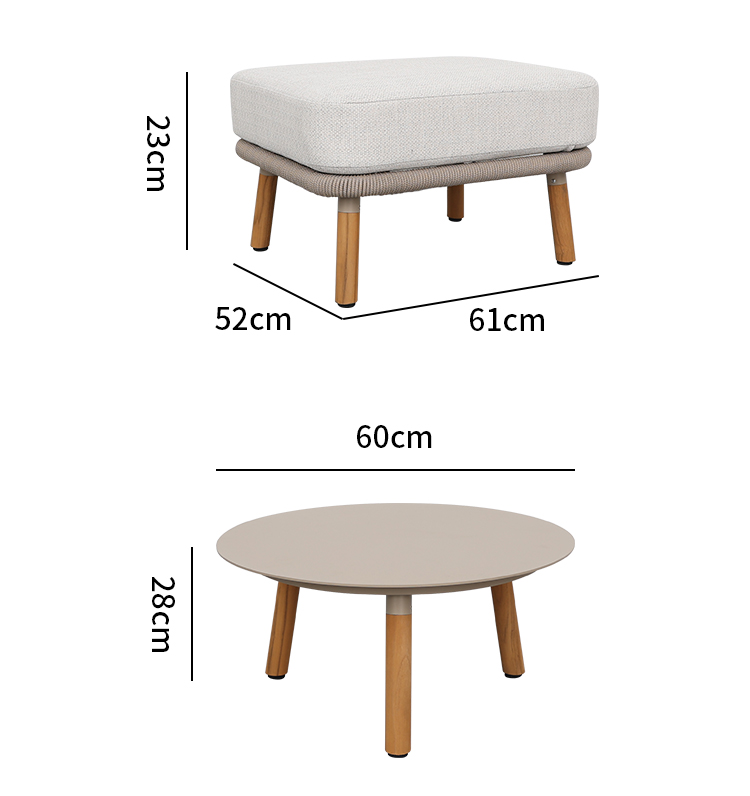 Single Sofa: W81*D89*H67/35cm Triple Sofa:W180*D89*H67/35cm Ottoman:W61*D52*H23cm Coffee table:D 80*34cm+60*28cm |