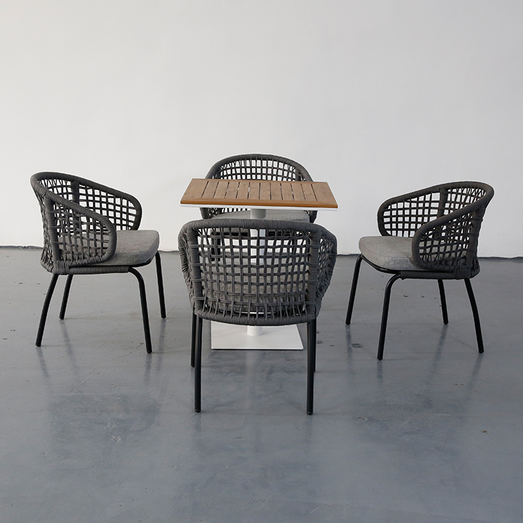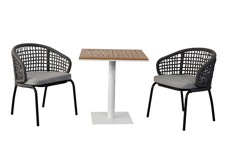 Aluminum Frame with Rope Weaving Chair + Plastic Wood Desk Top Metal Base TableTiempo de espera :