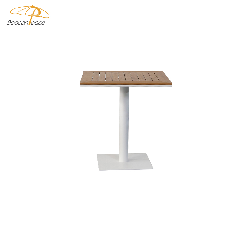 BP8706 Modern Outdoor Restaurant Furniture Plastic Wood Desk Top Aluminium Patio Garden Dining Table and Chair SetMOQ :