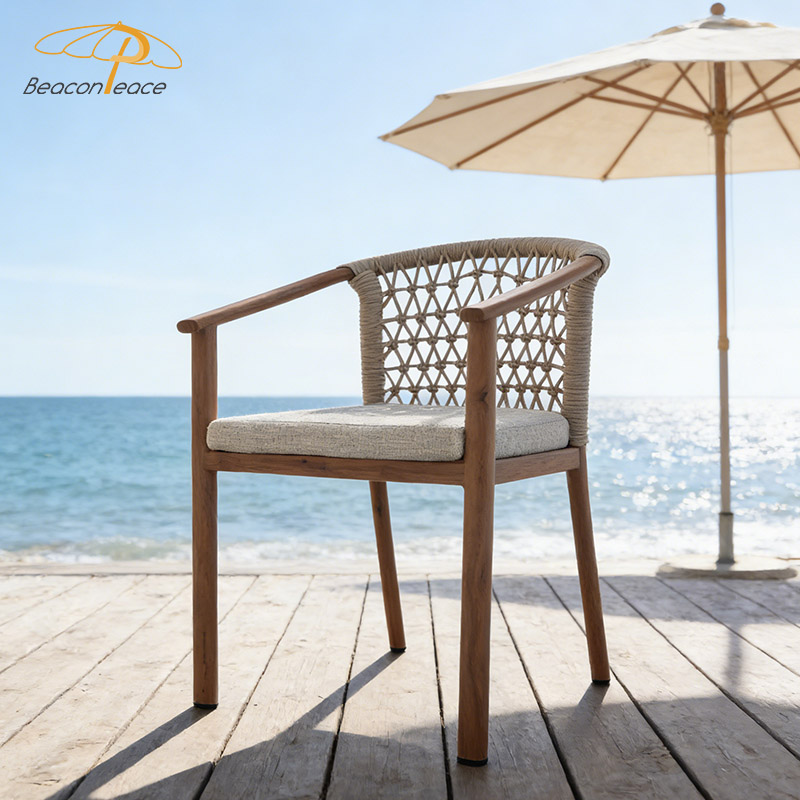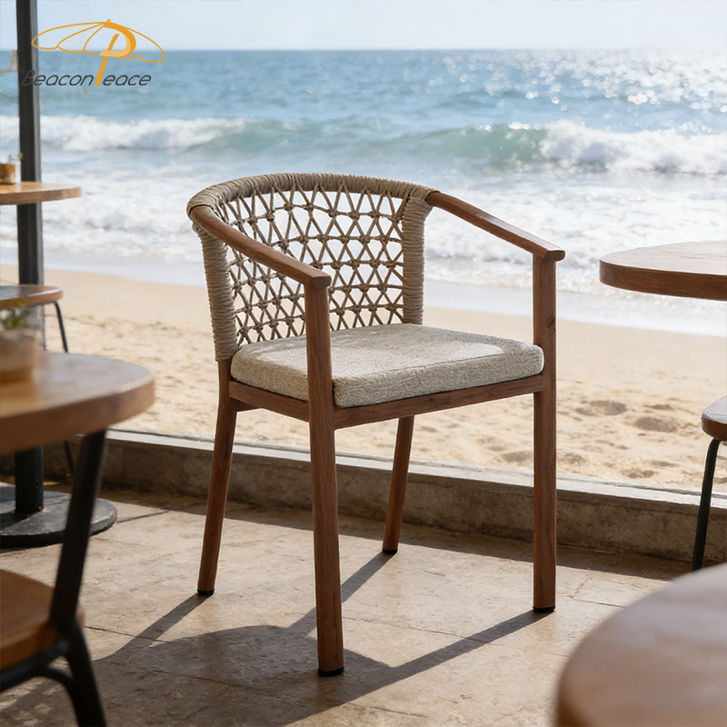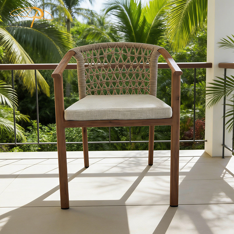 BP8467 Modern Wooden Grain Heat-Rransfer Aluminum Frame Stackable Outdoor Garden Dining Chairs with Rattan DecorMOQ :
