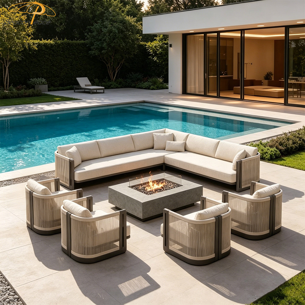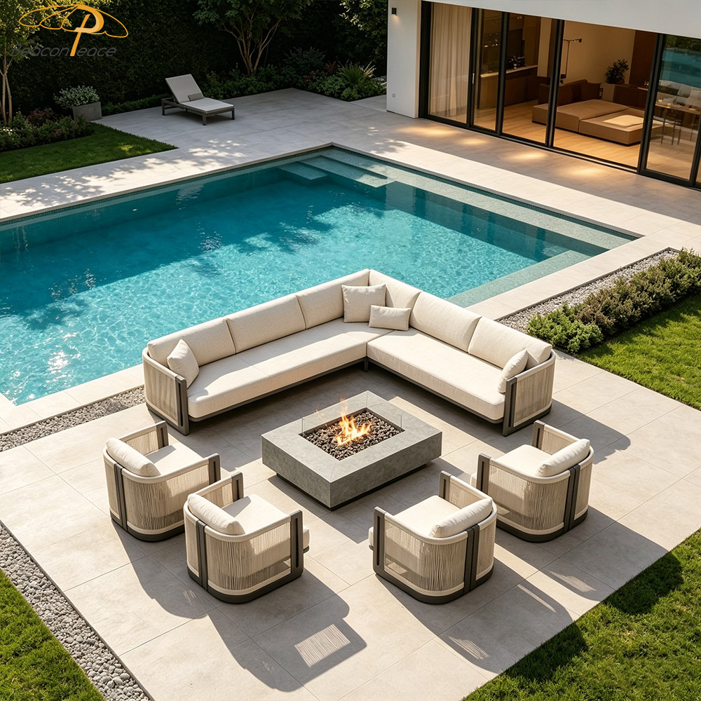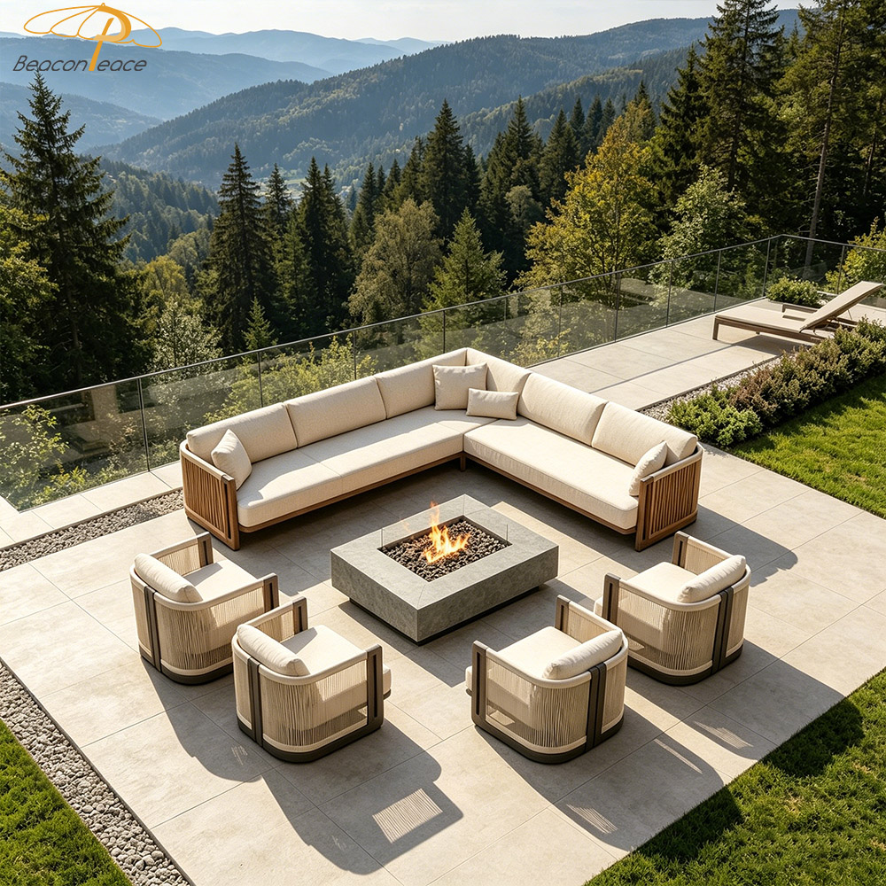NEW-4103 Nordic Design Luxury Outdoor Garden Furniture L Shape Villa Resort Teak Wood Patio Sectional Sofa Set |