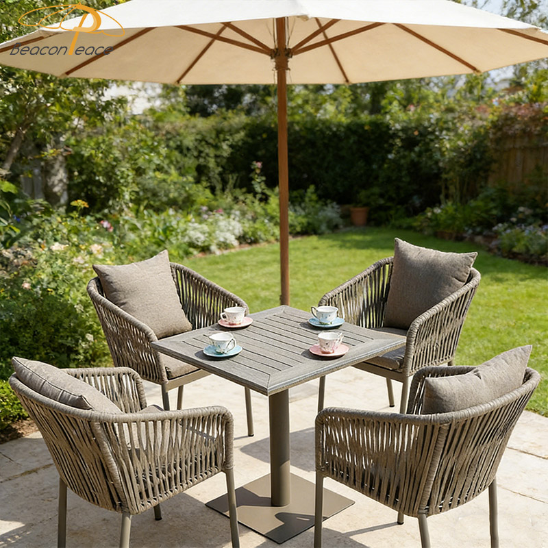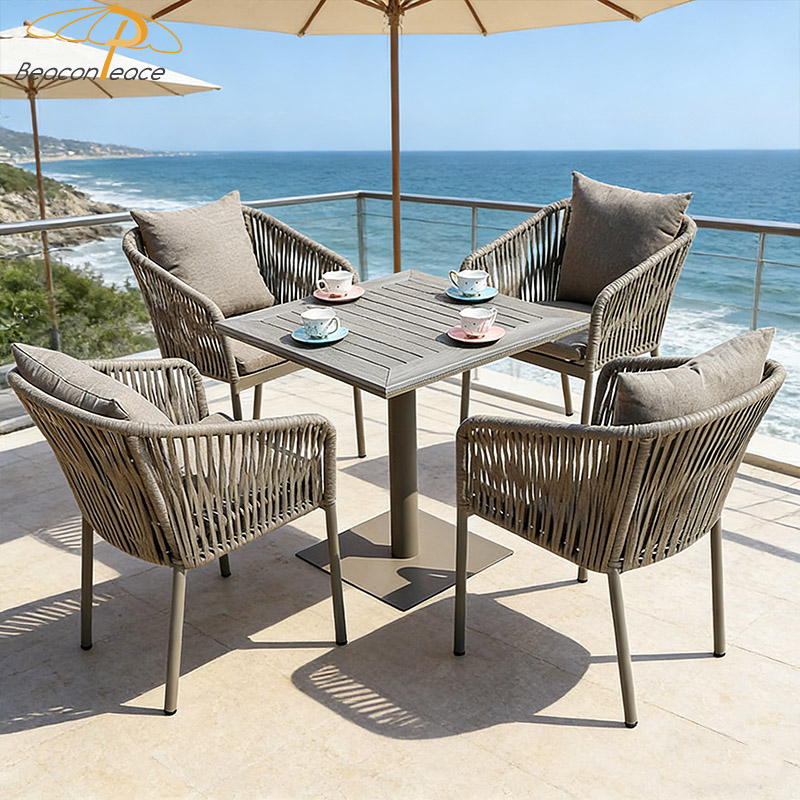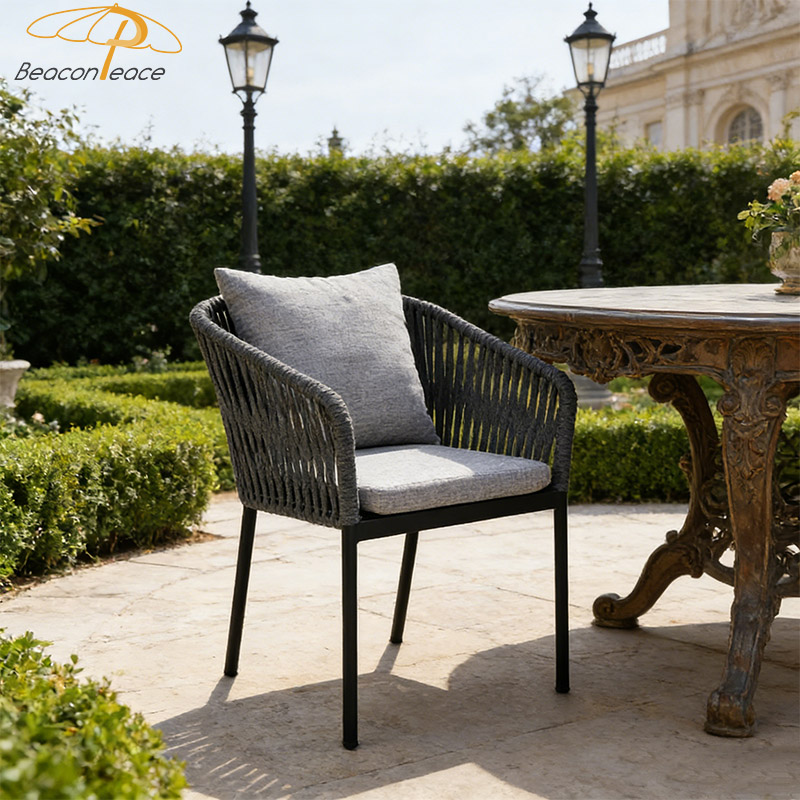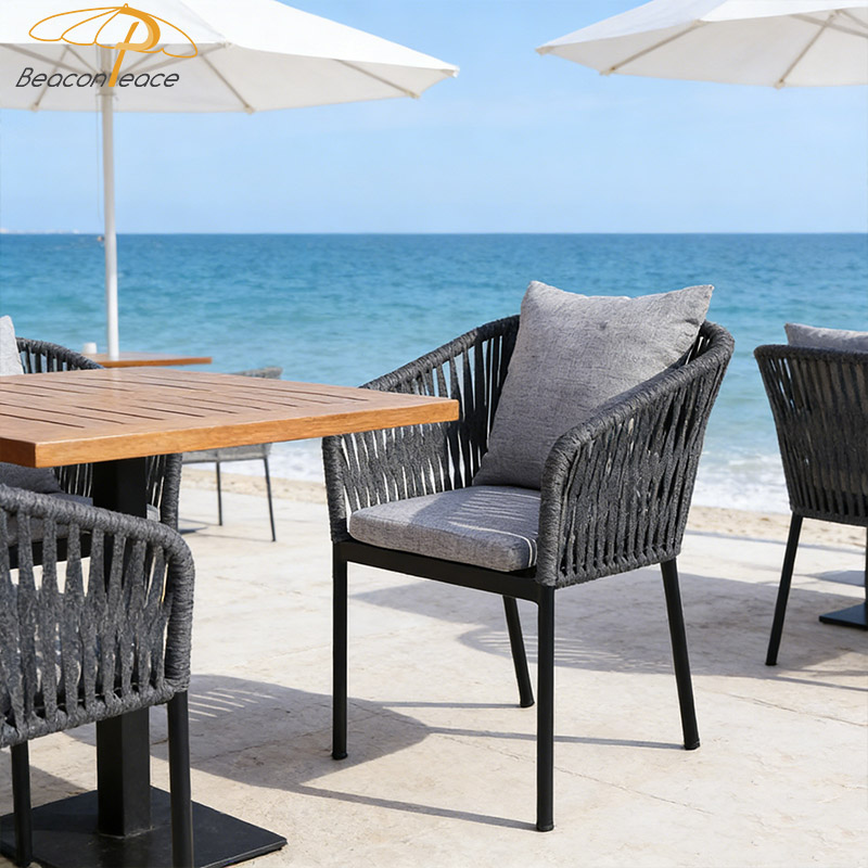 BP8077 Nordic Outdoor Restaurant Furniture Aluminium Rattan Garden Dining Chairs with Armrest |