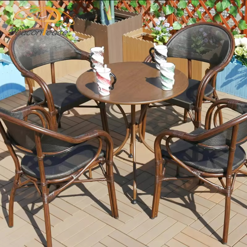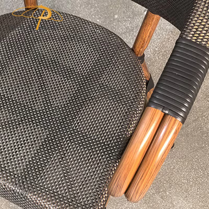This outdoor chair is cleverly blending retro style with modern design, with cushions and cushions in waterproof fabrics, which are moisture-proof and durable for comfort every time you use. Its aluminum alloy frame has been processed by brushing wood grain, which not only shows natural wood texture, but also has the advantages of lightness and corrosion resistance, adapting to various outdoor environments. Whether it is the garden in your home or the commercial space, it can add a unique touch of style and warmth to your outdoor area.