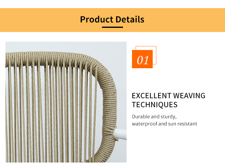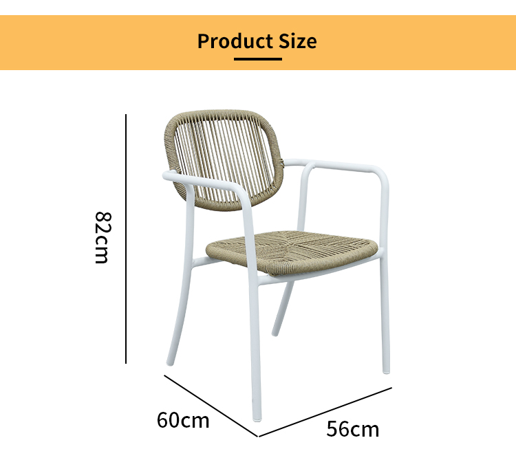 Table:aluminum frame with powder coated finish Chair:aluminum frame+outdoor rope weaving+waterproof cushion |
