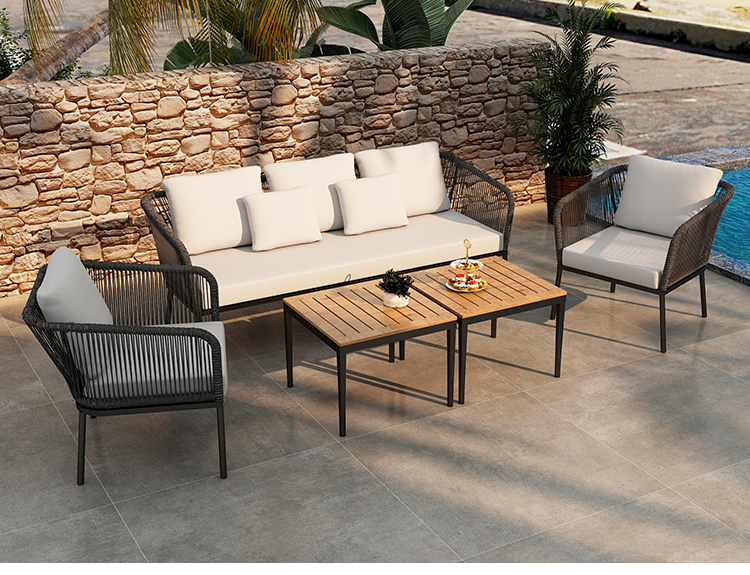BP5303 Waterproof Outdoor Patio Furniture Aluminium Frame Rope Rattan Woven Garden Sofa SetMOQ :