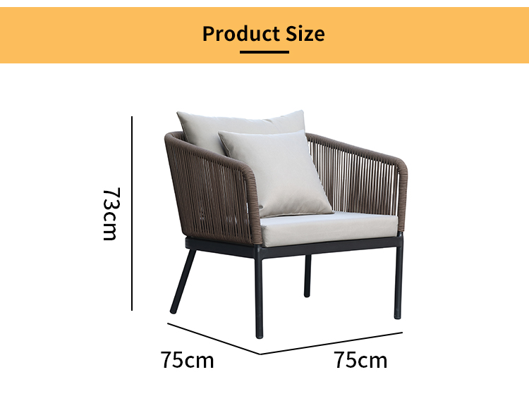 This outdoor aluminum alloy rattan rope sofa set is made of high-quality aluminum alloy and environmentally friendly rattan rope. It is durable and UV-resistant and suitable for all weather conditions. It includes 2 single sofas and 1 3-person sofa, plus 2 plastic-wood desktop aluminum alloy chairs, providing you with a comfortable and stylish outdoor leisure space. Waterproof cushions and easy-to-clean materials allow you to easily maintain and enjoy every moment of peace and relaxation.
