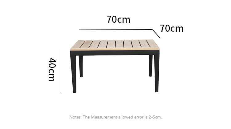 Frame:Powder Coated Finished Alum Tube With 6mm Polyster Rope Cushion:T10cm Polyester Table:15mm Plastic Wood Table Top |